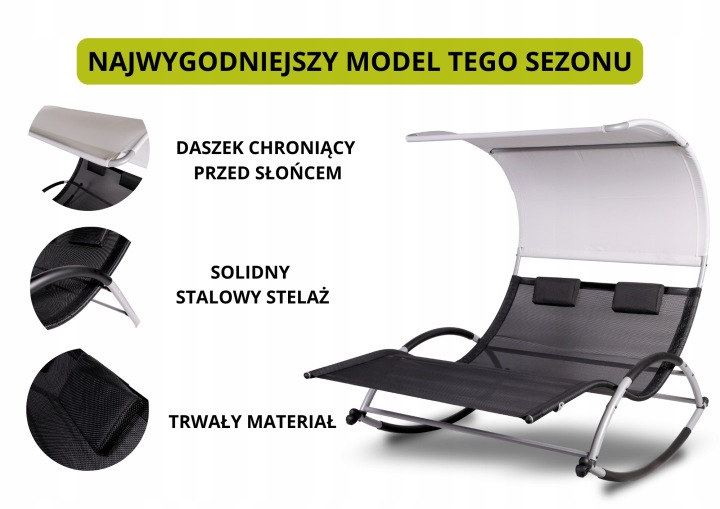 Leżak 2 osobowy bujany fotel łóżko polowe z daszkiem