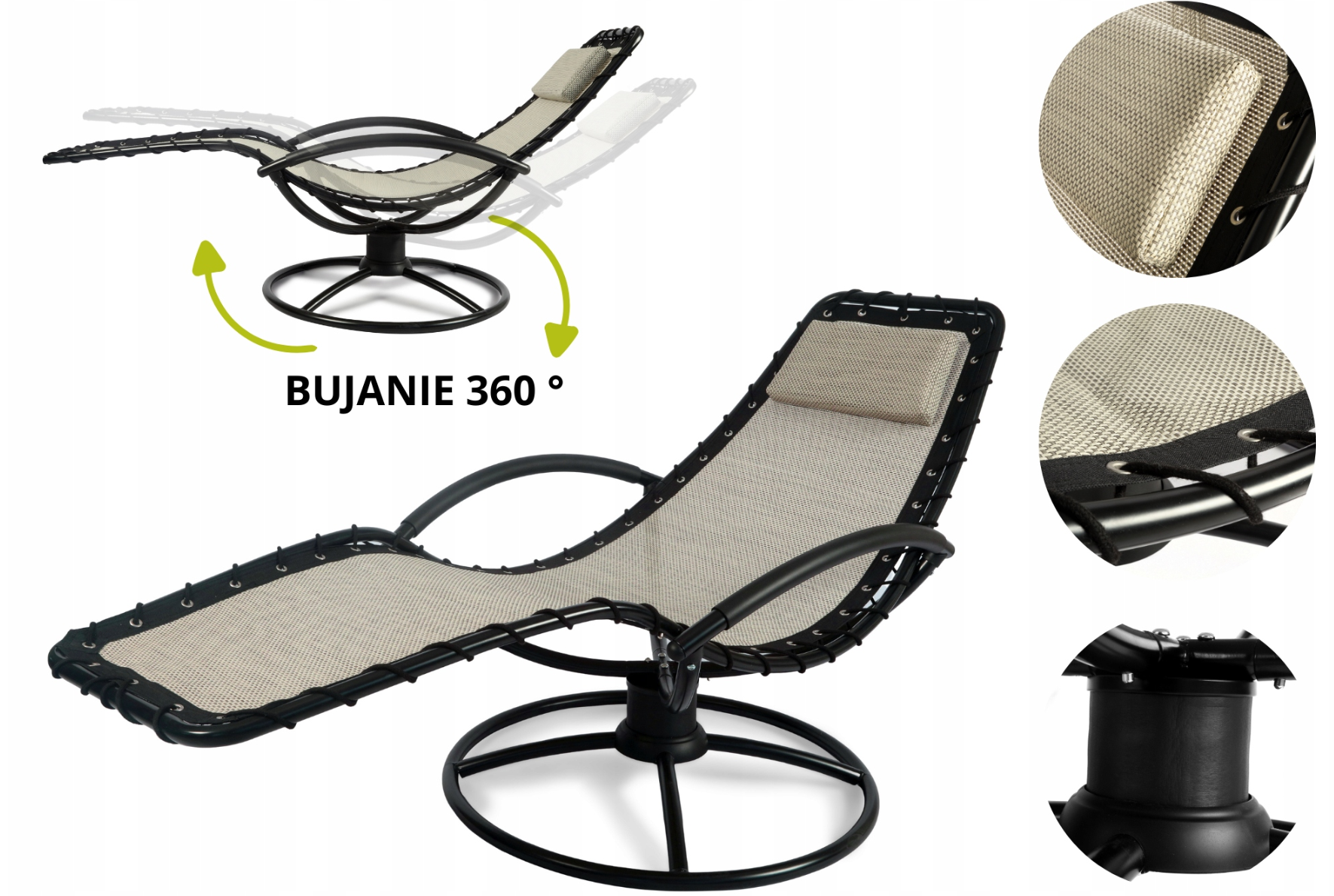 Elegancki i wygodny leżak zapewnia relaks zarówno na balkonie, tarasie jak i w ogrodzie na świeżym powietrzu. Leżak posiada w podstawie wbudowaną sprężynę dzięki temu masz możliwość bujania w zakresie 360 stopni. Dzięki specjalnemu materiałowi bujak jest całkowicie odporny na warunki atmosferyczne i promieniowanie UV. Ten piękny leżak będzie ci służył na wiele lat i jest najlepszym rozwiązaniem do twojego ogrodu.